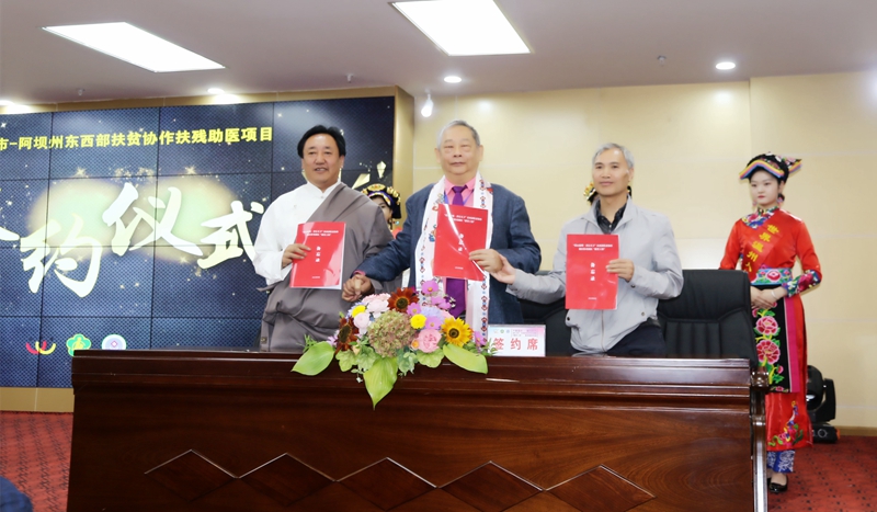 2019年9月2日,"爱心温州.善行天下"东西部扶贫协作扶残助医"微笑工程"在州人民医院启动。启动会邀请到了阿坝州政府副秘书长沈林杰、阿坝州残联党组书记、理事长杨海成、阿坝州卫健委副主任陈忠强、阿坝州扶贫移民开发局总工程师文瑞源、阿坝州医保局副局长杨秀平和州人民医院院长谷运麒出席,会议开始之前首先由出席会议的领导向来自温州的专家和慈善工作人员敬献了哈达和羌红。会议由州残联党组书记、理事长杨海成主持并致欢迎词,30多名患儿在家属的陪同下和州人民医院医护人员、志愿者共计200余人参加了启动会。