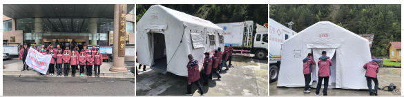 扎营布阵,预演协同。9日上午,参演队伍在小金县高效完成高原移动医院快速搭建及宿营地建立任务。四川(阿坝)高原卫生应急救援队的共有21名队员参与,其中包括来自阿坝州人民医院的20名医务人员和马尔康市人民医院的1名医生。