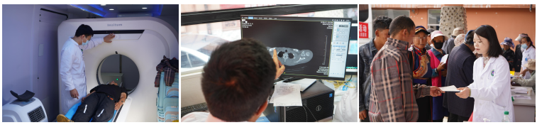 活动当日,听闻消息前来的群众早就在义诊点有序排起长队。医疗队员们迅即投身工作,各负其责,耐心且细致地为每一位前来咨询的群众实施诊疗。现场免费为108人次测量了血糖与血压,为群众开展了最基础的健康筛查工作。超声检查团队借助当地卫生院的设备,总共为31名患者完成了50个部位的详细检查;移动CT车更是发挥了重要作用,高效完成了37人次、共计43个部位的 CT 扫描;同时完成了心电图检查19人次,为疾病的精准诊断提供了有力支撑。整个义诊活动累计为100余人次提供了疾病诊疗、健康咨询以及科普宣教等服务。专家们运用通俗易懂的语言为乡亲们解答健康方面的疑惑,传播疾病预防知识,引导大家树立科学、健康的生活理念。