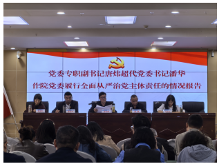 院党委专职副书记唐炜超代院党委书记潘华作《院党委落实全面从严治党主体责任的情况报告》并对医院全面从严治党形势进行分析研判,提出加强和改进措施。