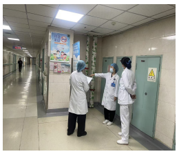 3. 人员防护督导: 现场抽查医务人员及陪护人员是否按照岗位风险等级要求,正确佩戴和使用口罩、手套等防护用品,并对医务人员手卫生的依从性与操作正确率进行了观察与记录。