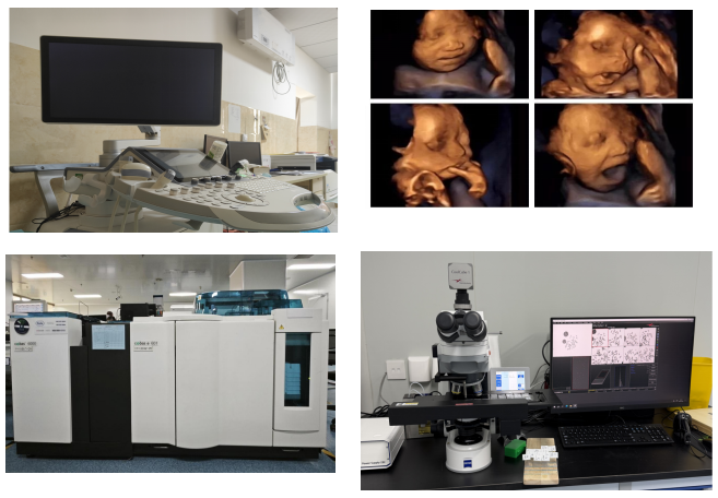 阿坝州人民医院产前诊断中心位于门诊二楼,主要由遗传咨询—产前诊断门诊、产前超声影像室、生化实验室、细胞遗传实验室构成,整合了妇产科、儿科、超声影像学、医学检验等多个科室的专业力量,为产前诊断技术的应用提供坚实的技术支持,组建了一支跨学科、多专业的优秀团队。配备国际领先的基因检测设备、三维超声成像系统及自动化实验室平台,可开展孕中期母血清学筛查(唐氏筛查)、羊水穿刺、染色体G显带核型分析、胎儿结构畸形筛查等核心技术、无创DNA产前检测(NIPT)、全染色体微阵列分析及羊水染色体高通量测序分析等分子遗传学项目,实现了对染色体非整倍体病、微缺失微重复综合征等疾病的精准诊断,确保早期发现高风险人群。