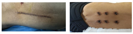 手术详细过程:在C型臂X光机的全程精准透视引导下,宿瑞强主治医师如同一位高超的导航员,在患者背部精准定位。通过六个微小皮肤切口,他避开了重要的肌肉群,沿着预定的安全通道,将六枚空心椎弓根螺钉如“定海神针”般,精准植入骨折椎体上下相邻的健康椎体内。随后,通过皮下隧道置入预弯好的连接棒,利用螺钉的提拉复位力量,宛如用“千斤顶”一般,将被压扁的椎体近乎完全恢复到原有高度,重建了脊柱的正常序列与稳定性。较传统开放手术术中出血大大减少。