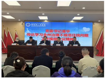 会议传达学习了全州治理不规范住院问题工作视频会议精神,重点学习了州医保局局长王惠勇、州卫健委主任向秋杰的讲话内容。会议指出,全省综合住院率位居全国第一,我州被明确列为全省住院率管控重点地区,退休职工住院异常问题尤为突出,是全省整治工作的重中之重。全院上下要深刻认识到,治理不规范住院、合理控制住院率,既是落实健康阿坝建设的政治任务,也是守护群众“看病钱”“救命钱”的民生底线,更是推动医院高质量发展、优化资源配置的内在要求。