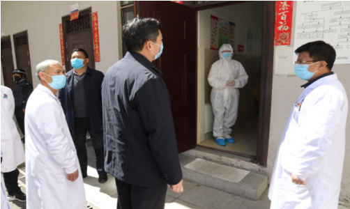 2020年3月14日省卫健委副主任宋世贵一行到阿坝州人民医院调研新冠肺炎的安全生产及质量提升工作,州政府副州长王树明、州卫健委主任泽郎达尔基、副主任蔡鹏飞、医政科科长田发兰陪同调研。