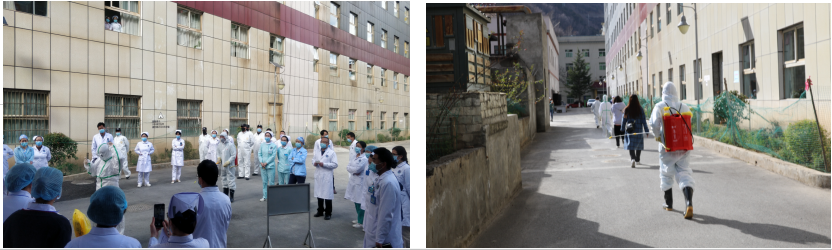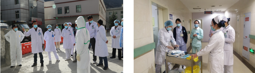 下午4点01分演练正式开始。演练中,呼吸内科模拟了病区内分别发现一例新冠肺炎疑似病例,依据阿坝州人民医院新冠肺炎医疗救治与疫情防控领导小组制定的流程及操作规程,医护人员严格按照流程完成了从发现、上报、隔离、转运到个人防护、医疗废物处置及终末消毒等各项工作,演练过程完整、应急组织规范,人员职责清晰,达到了预期效果。