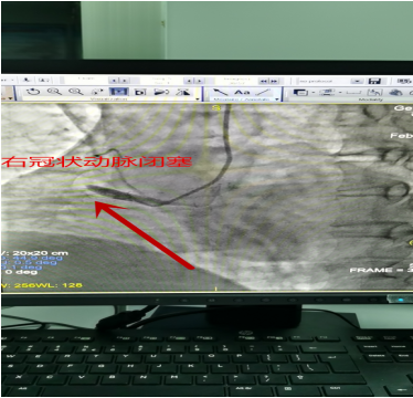 术前造影:患者右冠状动脉中段以远急性闭塞。