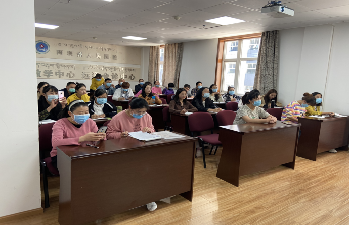 此次培训班由州医院科教科组织实施,在门诊6楼远程教学中心进行,整个培训对汶川县人民医院、茂县人民医院、九寨沟县人民医院3个县级全科转岗培训基地进行钉钉在线直播。培训课程共计56个学时,22堂课,内容包括医德医风、全科医生临床思维、医患关系与人际沟通、全科医学及相关理论、全科医生政策解读、健康管理与慢性病管理、社区康复、卫生信息管理、社区居民健康档案的建立应用与管理、流行病学与传染病的预防与控制、儿童健康管理、孕产妇健康管理、合理用药和抗菌药物的使用等方面培训内容。