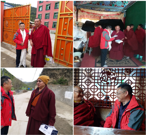 为全面贯彻落实州委“两联一进”群众工作重大决策部署,密切党群干群关系,深入推进群众工作全覆盖,2020年5月26日,阿坝州人民医院党委委员、副院长胡林一行三人到壤塘县棒托寺看望僧人夏周严木初、康旭寺僧人唐木确班玛、藏洼寺僧人门色、东岳,胡林副院长与他们亲切交谈,宣传了党的宗教政策,并代表院党委向他们表示了问候。胡林副院长还叮嘱僧人们在生活中要注意饮食健康、勤锻炼,有任何困难及时与结对干部联系。