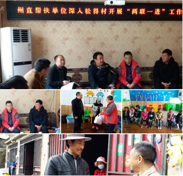 2020年5月26日下午在5月25日刚刚挂牌成立的由卡龙、章腊两个村合并的松德村村活动室,州残联理事长杨海成、州医保局副局长王先进、州医院副院长胡林联合组织开展“两联一进”群众工作全覆盖座谈会;在会上州医院驻村第一书记泽郎斯多、州残联驻村干部雍纪龙、松德村临时党支部书记村委会主任罗平分别介绍了松德村目前状况和存在困难,阿坝州人民医院胡林副院长承诺松德村村民继续享受目前“两联一进”和“精准扶贫”贫困户到我院看病住院时,开启绿色通道,减免10%的住院费的政策,并对松德村新一届领导班子提出五点意见:一是今年是精准扶贫的决胜年,刚刚成立的松德村过渡村级组织,要尽快掌握全村贫困人口情况,绝不松劲;二是5月底壤塘进入了汛期,要加强松德村境内汛期地灾隐患点的排查,保护老百姓生命安全;三是国家对松德村的项目建设支持力度大,驻村干部要监管好各项资金,党风廉政建设工作不能放松,各项目要尽量考虑让本村村民参加投工投劳,让老百姓有收入,同时也要价格公道,不让施工方为难;四是要加强松德村村级党组织建设,驻村干部要协助罗平书记尽快掌握松德村党员思想动态,为即将到来的党支部换届做好准备;五是州医院驻村第一书记泽郎斯多、州残联驻村干部雍纪龙驻村时间长,工作辛苦,各单位都理解。但今年是脱贫攻坚收关之年,为保持工作的连续性,州委组织部要求今年驻村干部继续做好驻村工作,暂时不换人;驻村干部要有充分思想准备,做好家人思想工作,服从组织安排。州残联理事长杨海成、州医保局副局长王先进相继就各自政策进行了讲解与强调。