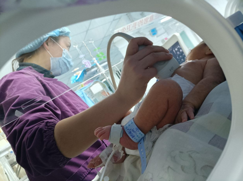众所周知,传统医学对于气胸诊断的方法主要是X线平片和CT检查。但在实际工作中以及查阅相关文献:只能平卧位检查的重症患者,X线检查的敏感性大大下降。CT检查是气胸检查的金标准,能对肺压缩程度做准确的判断,但对一般状况不稳定的患者没办法进行安全检查,从而导致诊断和治疗的延误。针对这些问题,近年来,阿坝州人民医院超声科不断提高科室队伍建设,拓展新技术、新项目,助力临床发展,自2018年就开始对新生儿科患儿进行肺部超声的检查,对新生儿呼吸窘迫(NRDS)、新生儿肺炎、湿肺、气胸等都能做出准确的诊断,使患儿得到及时的诊治,减少了患儿接触射线的频次,也避免和减少了床旁DR对同病房人员的射线辐射,解决了工作中的实际困难。