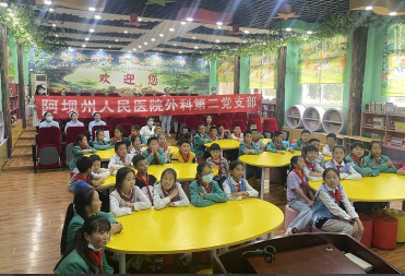 在中国共产党建党100周年之际,阿坝州人民医院外科第二党支部庆祝并开展以“感党恩,我为群众办实事”为主题的党日活动,2021年6月17日前往马一小四年级二班行急救知识普及教育。