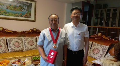 今天州医院沈永才、代秀珍两位老党员心情非常激动,州医院党委书记潘华为他们俩戴上了“光荣在党50年”纪念章。近日,中共中央办公厅印发《关于做好“光荣在党50年”纪念章颁发工作的通知》。通知指出,党中央决定2021年首次颁发光荣在党50年纪念章,明确了“光荣在党50年”纪念章首次颁发对象为健在的截至2021年7月1日党龄达到50周年、一贯表现良好的党员。