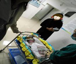 20分钟后进腹,行快诱气管插管全麻,1分钟内新生儿取出,Apgar评分9分、10分、10分。
