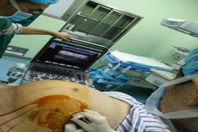 患者清醒状态,超声引导下行双侧TAP神经阻滞。