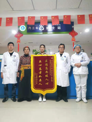 内三科患者痊愈出院患者赠送锦旗感谢医护