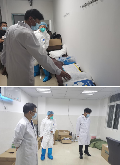 会后,院领导班子带领参会人员到发热门诊、隔离病房对疫情防控工作进行了检查督导。