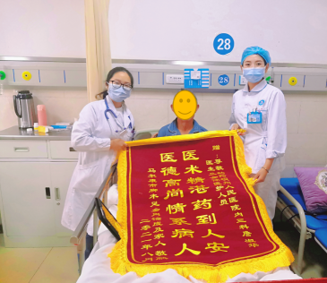 患者表示:“詹医生每天都来看我,关心我,耐心与我讲解病情,鼓励我坚持战胜病魔。多次根据我的病情变化细心调整用药,使我的病迅速好转,医术精湛,仁心仁术,太感谢她了。”詹医生感动的回复患者:“谢谢老人家的肯定,治病救人是我的初心,看到您好起来,我内心也非常高兴。这一面锦旗是非常珍贵的礼物,感谢您对我的肯定。”