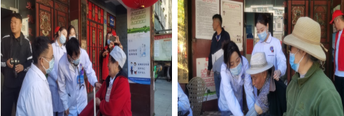 志愿者服务队为社区群众免费测血压、提供免费咨询以及健康宣教60余人,并指导他们日常保健。