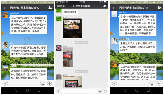 大家在收看这个颁奖仪式后都再次清楚地认识到:在全社会弘扬这种道德精神,形成一种弘扬正气的风范的正能量,学习道德模范不是一句口号,应该落实在行动上。我们必须在日常的生活中做到孝敬长辈,诚信做人,热心助人,舍己救人。相信道德之流将会继续涓涓流淌,以每个人心中善良的土壤为源头,穿流于贸大的每一处,蔓延至世界的每一个角落,穿越过历史,化作一条奔腾不息的道德长河;作为医务工作者,更要秉承希波克拉底医学生誓言:“健康所系、性命相托!当我步入神圣医学学府的时刻,谨庄严宣誓:我志愿献身医学,热爱祖国,忠于人民,恪守医德,尊师守纪,刻苦钻研,孜孜不倦,精益求精,全面发展。我决心竭尽全力除人类之病痛,助健康之完美,维护医术的圣洁和荣誉。救死扶伤,不辞艰辛,执着追求,为祖国医药卫生事业的发展和人类身心健康奋斗终生!”,就像敬业奉献模范:骆抗先主任医师,攻克 “乙肝专家 敢为人先”,弘扬“大医精诚 患者至上”精神,我们将坚决拥护党的“十九大”健康中国战略目标的实施,立足:“人民健康是民族昌盛和国家富强的重要标志。”在进入新时代之时,立足新方位,更好地为人民群众提供全方位全周期健康服务而积极行动起来。