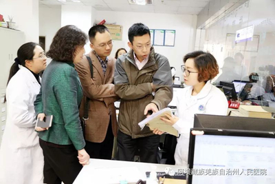 张峰组长和欧阳梅副州长等领导详细察看了我院急诊科、入院收费医疗保险结算处、消毒供应中心、儿科新生儿病房、ICU重症监护病房、血透室和远程会诊中心,仔细了解了我院重点科室诊疗、医保结算、健康扶贫、远程诊疗、急诊急救工作开展情况。督导组领导们认真听取了我院党委书记、院长谷运麒介绍,对医院发展规划和健康扶贫及“大学习、大讨论、大调研”工作提出了指导意见。