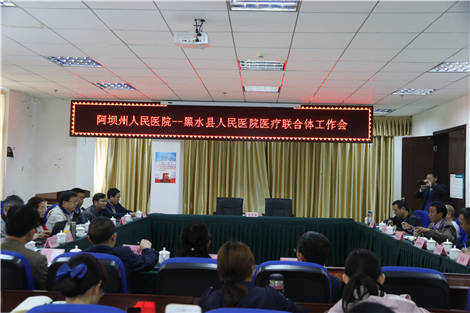 按照阿坝州卫计委《关于印发<阿坝州规范医联体建设实施方案(试行)>的通知》(阿州卫计发〔2019〕13号)文件要求,需完善阿坝州人民医院医联体建设试点并逐渐拓展范围工作。应黑水县人民医院的邀请,2019年6月5日上午,在阿坝州人民医院医务科的精心组织下,由副院长杨林带队,医务科科长蒲光军、护理部主任李晓莉、网管科科长蔡艺、社会事业发展部部长王曦、质控办主任翁世平、院感科科长杨艳梅、儿科主任夏清等13名专家组成的团队前往黑水县人民医院进行医联体工作。
