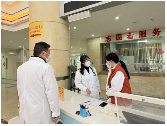 在门诊大厅和出入院管理中心,检查组详细询问了节日期间的就诊流程、人员值守安排以及应对突发人流的疏导预案。值班领导何永花强调,门诊和出入院窗口是服务患者的第一线,务必保证服务质量,优化服务流程,同时要加强秩序维护和引导,确保患者就医体验和现场安全。