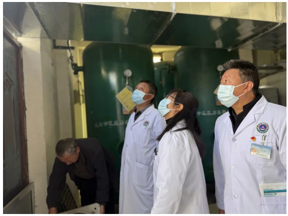 在配电房和制氧机房,检查组仔细查阅了设备运行记录、巡查台账,实地察看了备用电源切换、供氧管网压力等关键设施的运行状况。值班领导何永花指出,电力保障和医用氧气是医院的“生命线”,值班人员要时刻保持警惕,严格执行操作规程,加强巡检力度,确保春节期间水、电、气、氧的供应绝对安全、万无一失。