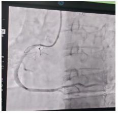 一名58岁的男性患者因“胸痛1+小时”患者遂电话联系急诊120,120出诊医师到达现场后根据病情立即完善心电图,提示“急性下壁心肌梗死”,立即电话和微信联系心内科导管室值班人员,明确急性下壁ST段抬高心肌梗死,马上给与“阿司匹林及替格瑞洛”抗血小板聚集,并在转运途中向患方告知病情(这是一种极其凶险的心血管急症,心肌坏死面积大,随时可能发生恶性心律失常、心源性休克甚至猝死),需要马上手术治疗,开通闭塞的罪犯血管,征得患方同意。于14:09到达阿坝州人民医院绕行急诊科及CCU,于14:12在医务人员陪同下到达导管室急诊行“冠状动脉造影术及冠脉内球囊成形及血栓抽吸及冠脉内溶栓术”,术后转入CCU进一步监护治疗。