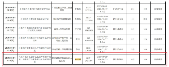 目前,科室正严格按照国家级项目管理规范,稳步推进招生与筹备工作。未来,阿坝州人民医院普外科将继续以国家级继教平台为纽带,将高原复杂肝包虫病的外科治疗“硬核技术”转化为可复制、可推广的“标准方案”,为提升区域重大疾病防治水平、守护高原群众健康贡献阿坝力量。