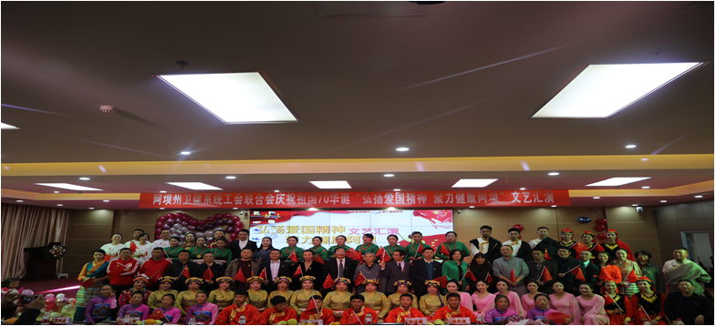 为隆重庆祝新中国成立70周年,积极响应“不忘初心、牢记使命”主题教育活动,唱响“忠诚铸就卫健魂、担当奋进促健康、清廉凝聚行业神、勤政务实树形象”的主题,9月25日,在阿坝州总工会的大力支持下,由州卫生健康工会联合会组织,州人民医院工会委员会承办,以“弘扬爱国精神、聚力健康阿坝”为主题的文艺体育系列活动州人民医院如期举办。